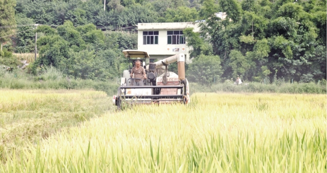 □本报记者 冯庄 实习记者 秦智城 文/图 金秋九月,地处沱江中游的四川省资阳市处处呈现一派丰收景象。在雁江区丹山镇的万亩稻渔产业园区内,稻谷飘香,百亩水稻优质高产品种攻关示范田在收割机的轰鸣声中实打实收,以丰硕成果破解粮食单产提升难题,成为供销社系统推进新时代更高水平“天府粮仓”资阳片区建设的生动范例。 从引入四川省农科院优质粮种,到以“科社合作”打通科技转化“最后一公里”,再到构建“种—管—收—加—销”全链条服务体系,雁江区供销社以百亩示范田为起点,不仅推动当地水稻产业实现从“种得好”向“卖得好”转变,更探索出可复制、可推广的粮食增产提质路径,为保障粮食安全注入强劲的供销力量。 破题开篇:从“政策号召”到“良种落地” “开展水稻优质高产品种攻关并非临时决定,而是省供销社推动农业提质的明确要求。”雁江区供销社负责人道出了百亩示范田项目的由来。此前,四川省供销社要求各市(区)供销社布局示范推广项目,为农业高质量发展注入新动能。 政策下达后,资阳市供销社迅速响应、主动作为。结合区域农业发展实际,该社确立了“以点带面突破粮食单产瓶颈”的工作思路,既稳步提升区域粮食总产量,更要着力优化粮食品质,为破解雁江区水稻种植领域长期存在的“老问题”提供了清晰方向与行动指南。 今年4月,资阳市供销社主要负责人带队赴四川省农业科学院水稻高粱研究所洽谈合作,确定引进“品香优秱珍”与“粒香优旌占”两个优质杂交水稻品种,雁江区供销社水稻优质高产品种攻关工作正式启动。 这两个品种各具优势。“品香优秱珍”是四川省农科院耗时10年培育的中籼迟熟品种,荣获四川省“稻香杯”特等奖,连续三年入选全省农业主导品种,历经市场与实践的双重考验,堪称“明星品种”。2024年,雁江区部分农户小范围试种该品种,在耕作条件有保障、管理水平较高的情况下,亩产达600公斤,高产潜力初步显现。