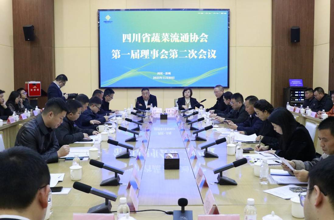 本网讯(记者 冯庄 实习记者 秦智城 文/图)11月30日,四川省蔬菜流通协会第一届理事会第二次会议在彭州举行。本次会议以规范协会建设、明确发展方向、凝聚行业合力为核心,汇聚协会理事会单位代表、新增补理事候选单位代表、各专委会主要成员及特邀嘉宾等多方力量,为四川蔬菜流通产业高质量发展擘画蓝图。四川省供销社企业发展与金融服务处副处长廖哲、四川省蔬菜流通协会会长何昕出席会议,四川省蔬菜流通协会秘书长伍纲主持会议。