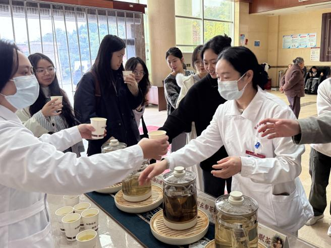 随后,选调生们前往中医医院安成路(新)院区,开启了一场“看、听、品、验”的中医药文化之旅。在门诊大厅,大家品尝了医院特制的四季养生茶,在茶香四溢中感受中医养生智慧;名医堂里,众多专家生动展示了“天人合一,调和致中”的中医哲学和特色诊疗优势;在中药房和煎药室,传统的中药煎制方法体现了对古法工艺的坚守与尊重。