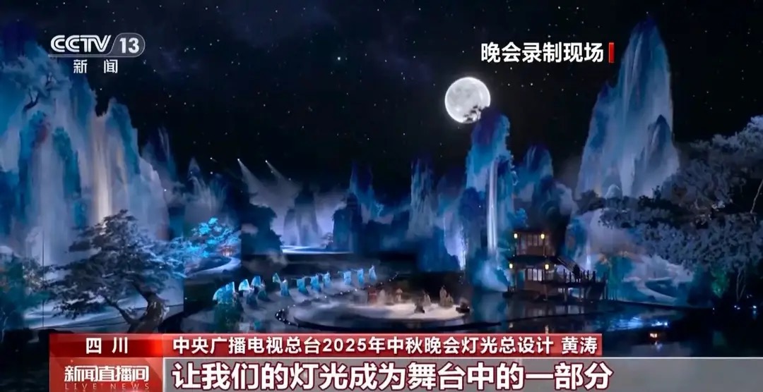 中央广播电视总台2025年中秋晚会灯光总设计 黄涛:我们希望的是把灯藏起来。希望能通过演绎的一种表达,诗意的表达,让我们的灯光成为舞台中的一部分。既做到了渲染,又做到了整个的铺垫,使人物的光更舒服,使所有的景别更加沉浸。