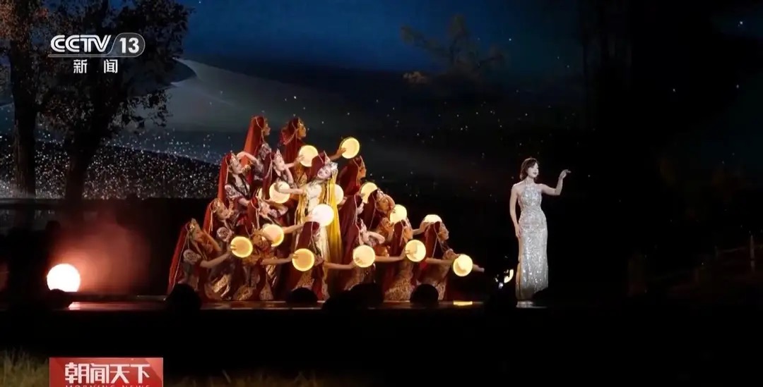 夜幕之下,选址在四川德阳玄珠湖的晚会主舞台依托实景山水,延续“唯美、真挚、抒情、浪漫”风格,依托各地自然与人文景观,晚会在歌曲、舞蹈等艺术形式中融入丰富多彩的中国传统元素与中秋节日符号,以现代视听语言传承跨越千年的情感,向世界展现中华文化的独特魅力。