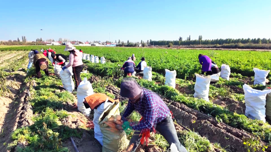 新疆霍城:特色农业喜迎丰收 胡萝卜大豆采收忙