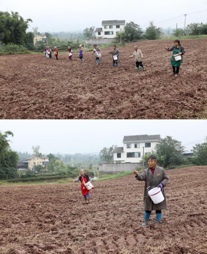 11月3日,在四川省广安市广安区白市镇鞠萍村,村民点播冬小麦。