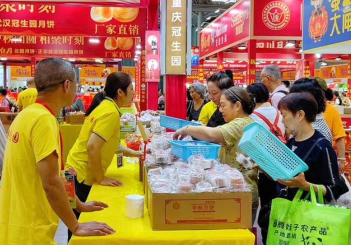 但这场盛宴远不止于月饼。展会同期举办“2025金秋消费季·川渝名优特新产品展”,将美味从月饼扩展到全国特色农副产品,会展中心打造成为了一座“中秋美食博物馆”。会东蓝莓、青川木耳、汉源花椒油、重庆火锅底料、自贡冷吃兔、红原牦牛奶——这些充满地域符号的物产,吸引不少市民推着小车“扫货”。而山西老陈醋、宁夏枸杞、新疆大枣、大连海产等省外特色,也让人仿佛完成了一场“味觉上的全国旅行”。重庆火锅底料展位前,工作人员演示着牛油锅底的沸腾过程,麻辣香气引得路人驻足。