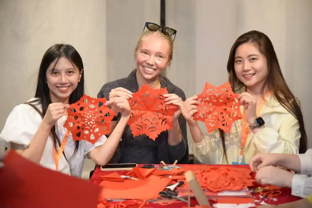 从山巅来到江畔。嘉陵江畔的沿口古镇,热情的武胜人用嘉陵江船工号子、武胜高脚狮子、武胜剪纸组成的“非遗大餐”招待来客。特别是武胜剪纸,一把剪刀剪出各式图案,激发外籍游客浓厚兴趣,现场纷纷“拜师学艺”。“我要把亲手剪的花带回去送给妈妈。”“这门技艺非常有趣,我要让我的同学也来学习。”