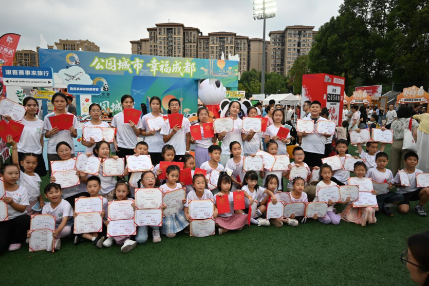 本网讯(记者 李祥 文/图)在成都双流区“日前举行的川超”联赛现场上演了别开生面的一幕:一群孩子们精神抖擞地站在足球嘉年华的场馆内,面对众多游客,孩子们用稚嫩却充满自信的声音,详细介绍着空港花田、黄龙溪古镇、黄龙溪欢乐田园、浩海立方等双流区标志性景区的特色。这群平均年龄较小的推荐官,其中一位小选手年仅6岁,成为赛事期间一道亮丽的风景线,吸引了大量观众驻足聆听、互动,他们以独特的视角和富有感染力的表达,为双流文旅赚足了眼球。