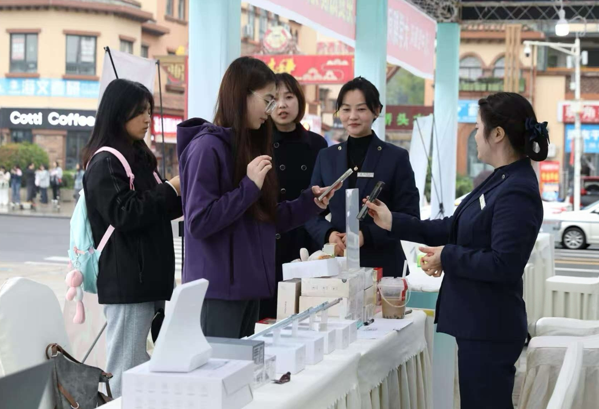 10月31日,文化周另一重点活动“大学生消费节”在罗江醒园商业街启动。现场设数码产品以旧换新与休闲食品两大展区,汇聚十余家商户,琳琅满目的特色产品吸引众多学生走出校门,踊跃参与这场集购物、娱乐与文化于一体的“校门口的消费节”。休闲食品区人气尤旺,蛋糕、零食等商品很快销售一空,商户反响热烈;数码区域则为学生提供了便捷的换新与选购服务,丰富选择满足多元需求。